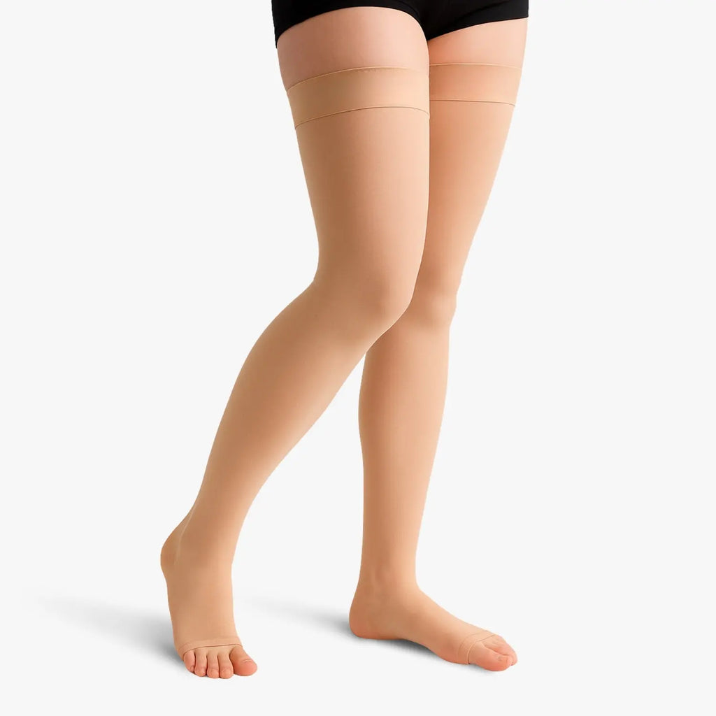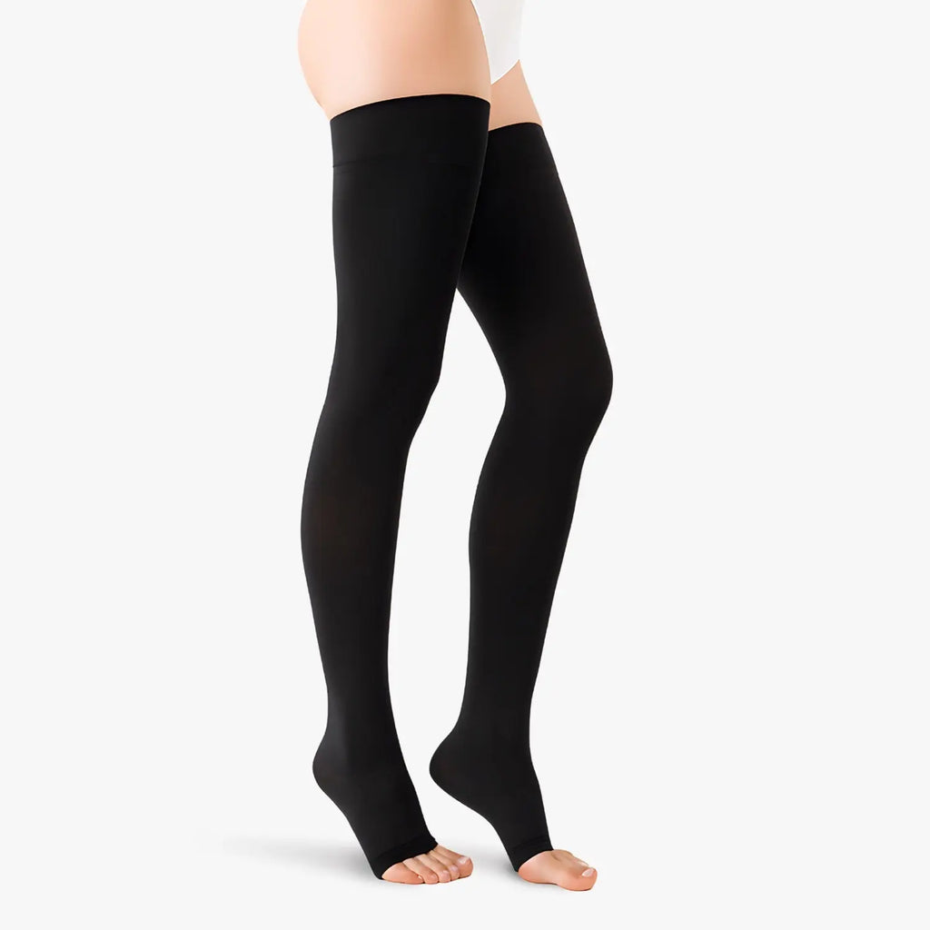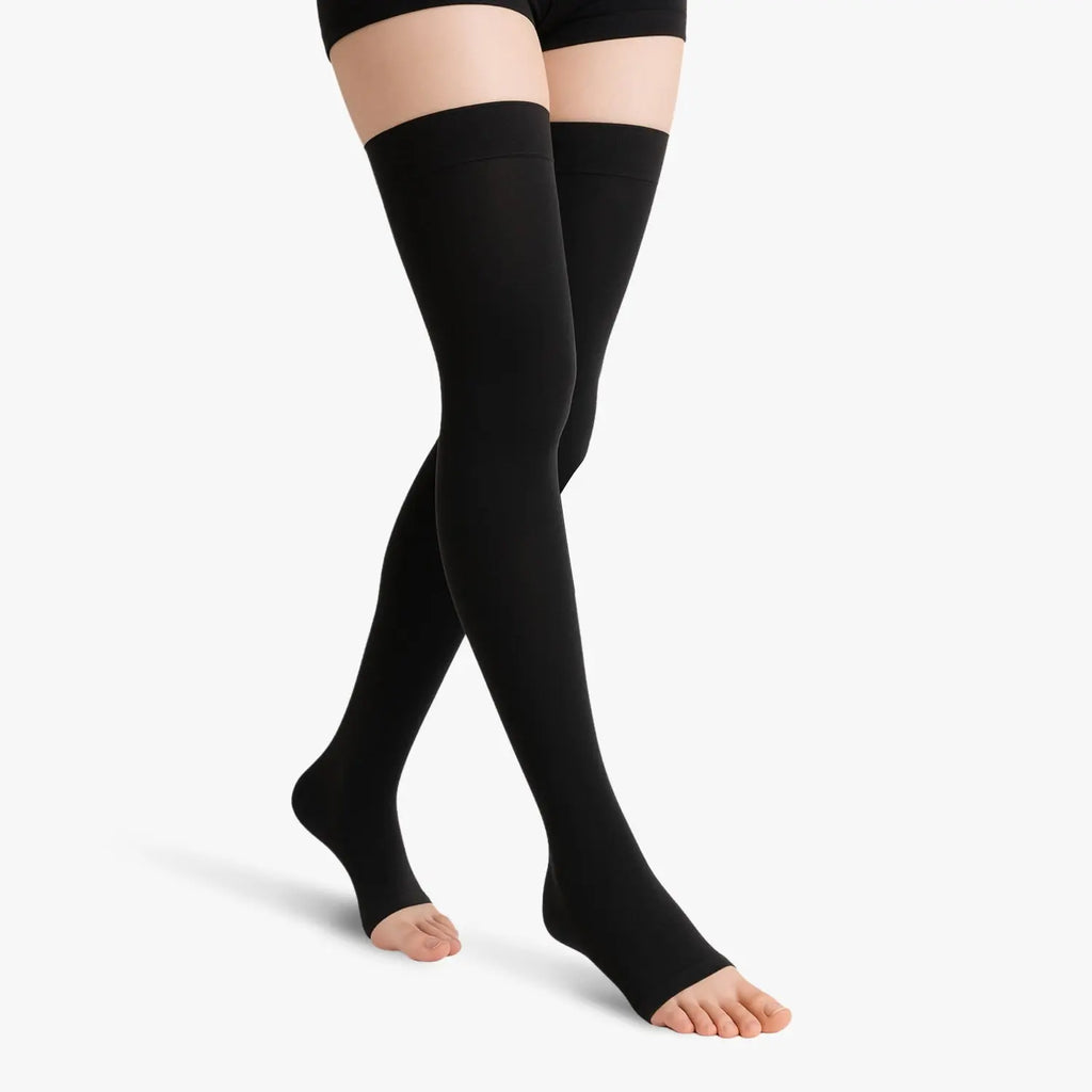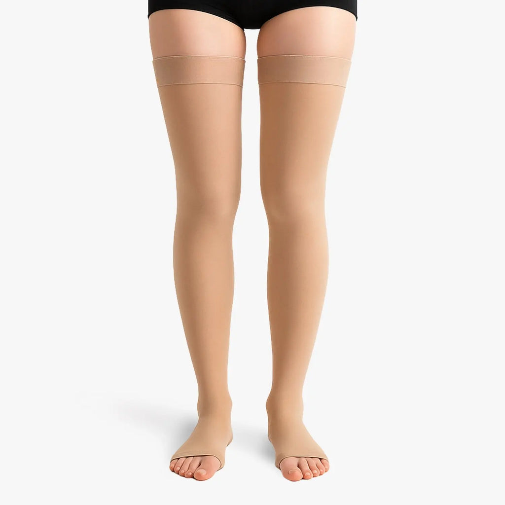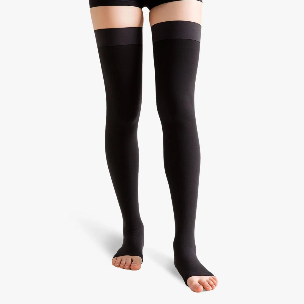 Lassen Sie sich nicht länger von langem Stehen oder Sitzen belasten. Unsere Kompressionsstrümpfe der Klasse 2 mit offener Spitze fördern die Durchblutung. Sie reduzieren Schwellungen und lindern wirksam schwere Beine. Dank ihrer abgestuften Kompression bieten sie optimale Unterstützung und ermöglichen gleichzeitig Ihre Füße können atmen. Perfekt für alle Situationen – Arbeit, Sport, Zuhause. Ob Schwangerschaft oder Reisen – sie garantieren dauerhaftes Wohlbefinden im Alltag.